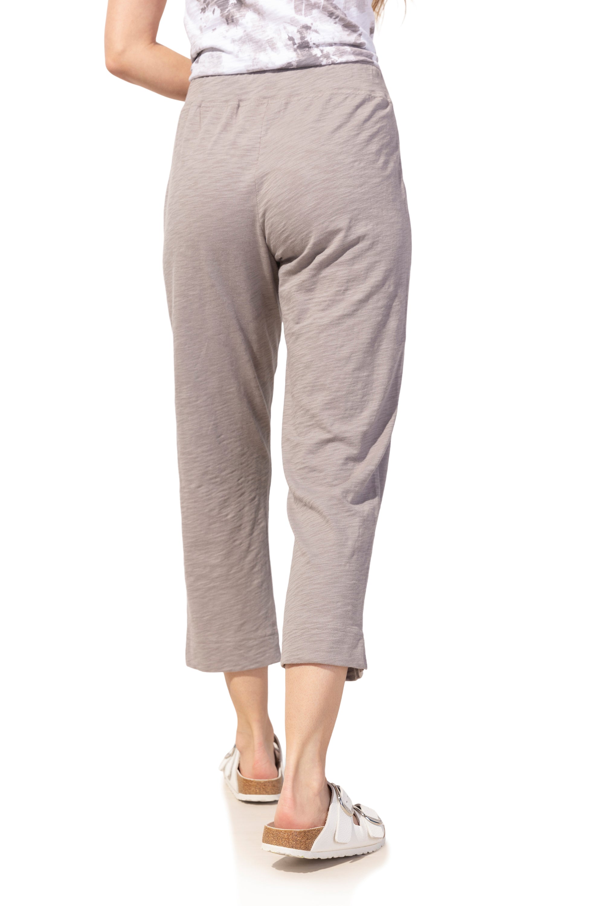 These easygoing capris combine everyday style and comfort, crafted from the finest Peruvian cotton jersey prized for its softness, durability, and strength, with slub-textured yarns for a unique, nuanced finish. A wide pull-on waistband, patch pockets, and a wide-faced hem with side slits create a relaxed, clean, and modern look.