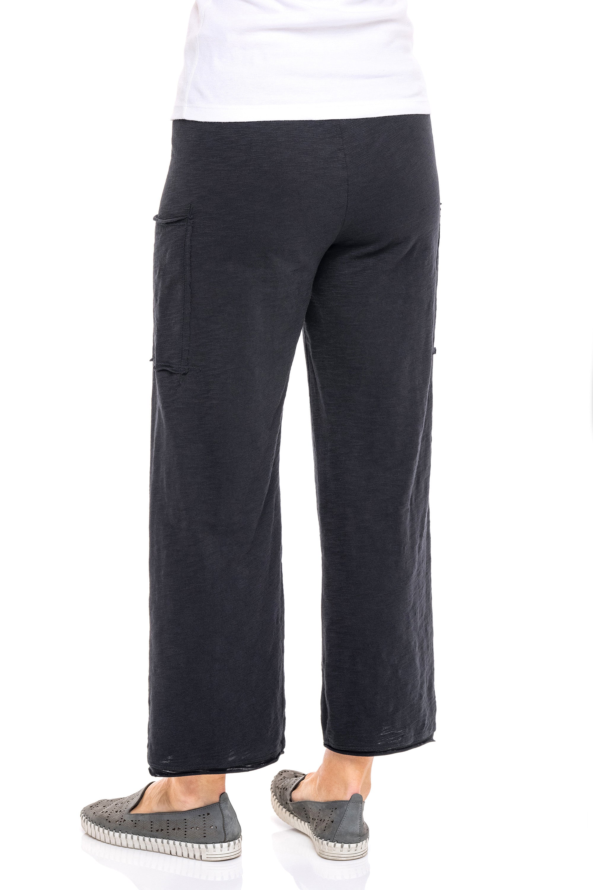 A true favorite, these floods balance laid-back comfort with everyday chic, crafted from the finest Peruvian cotton jersey prized for its softness, durability, and strength, with slub-textured yarns for a unique, nuanced finish. Designed with a relaxed wide-leg fit and no side seams for a smooth, flat drape, they feature a pull-on waistband, patch pockets, and a rolled-edge hem—perfect for lounging, lunch dates, and long flights.