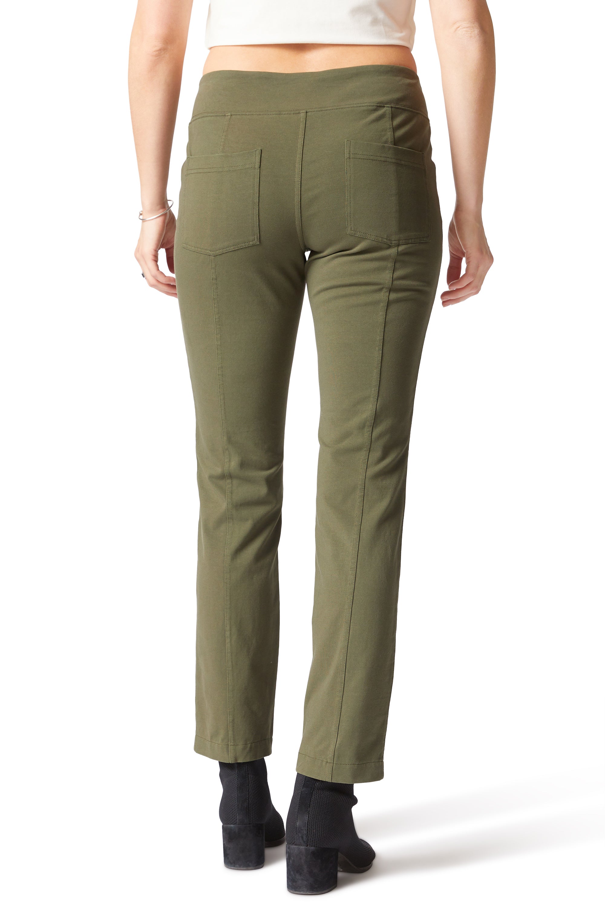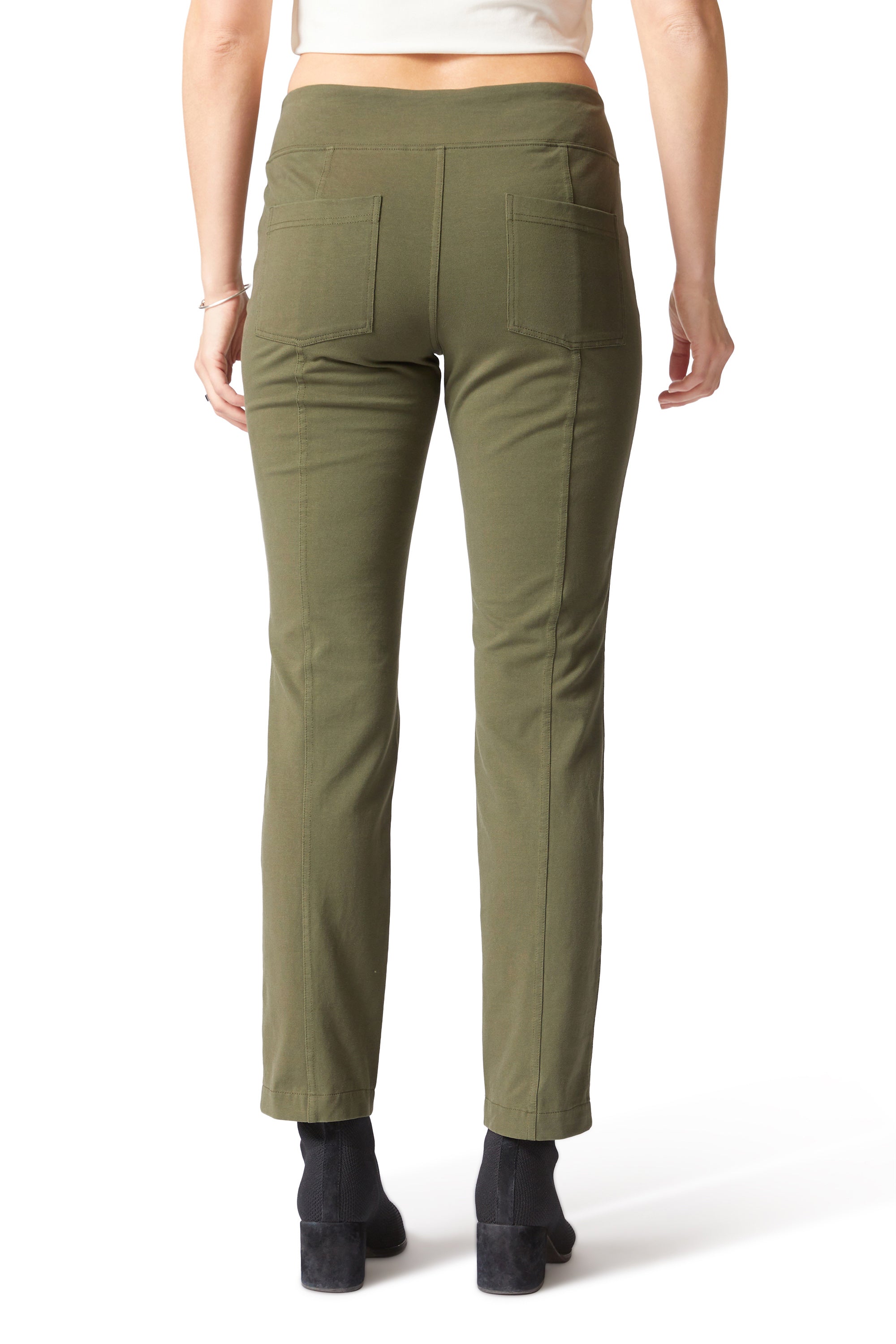 An elevated alternative to your everyday denim, now in a rich forest green. These luxuriously soft cotton knit pants—with just a hint of spandex—offer exceptional comfort, stretch, and style. The deep green hue is a versatile neutral, pairing effortlessly with everything from cozy knits to polished blouses. Designed with a smooth pull-on waistband and gently tapered leg with mixed-direction seaming for subtle structure. Petite front pockets and classic back patch pockets add a practical touch. The fit is flattering and easy, sitting comfortably at the natural waist with a 29.5" inseam—perfect for dressing up or down.