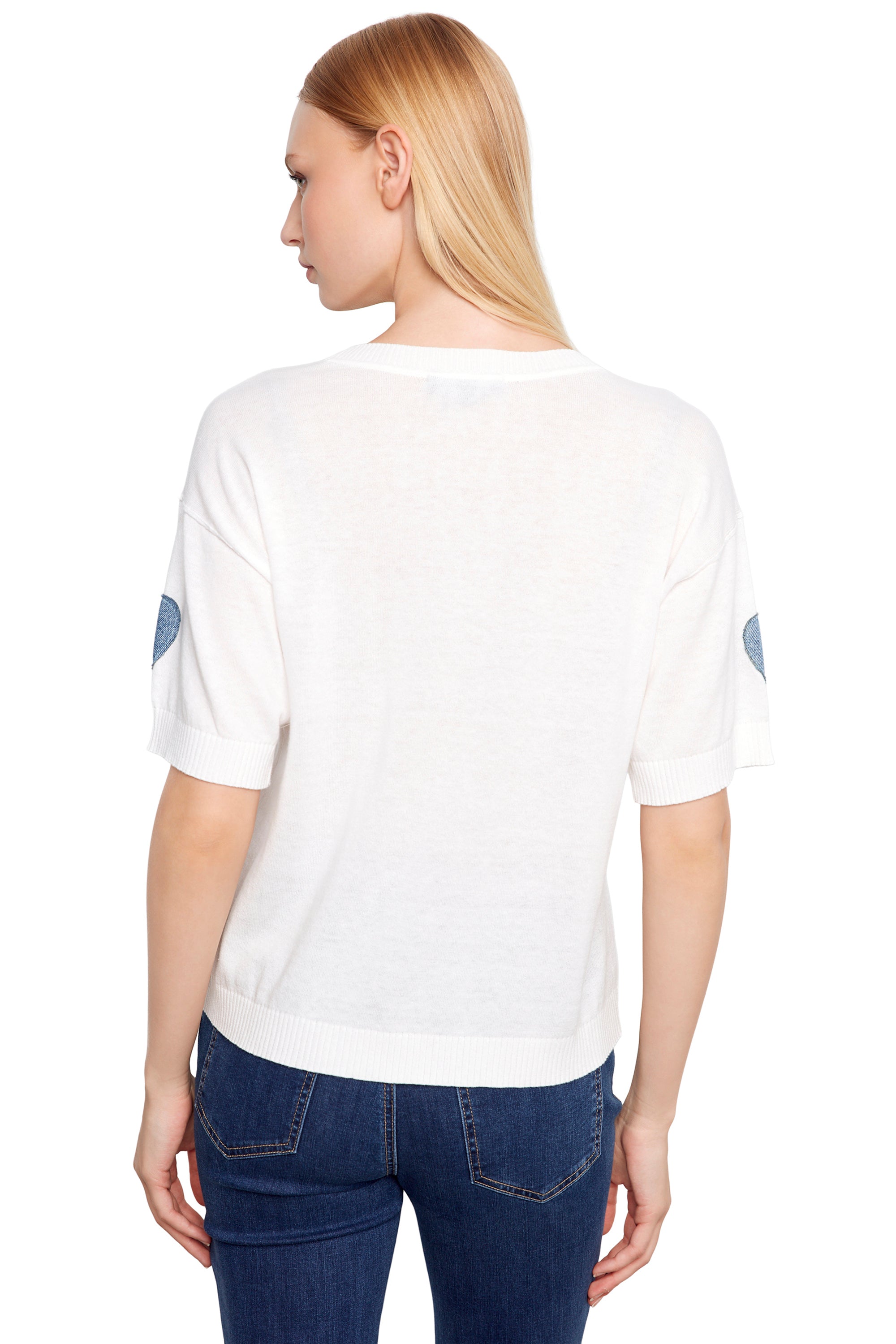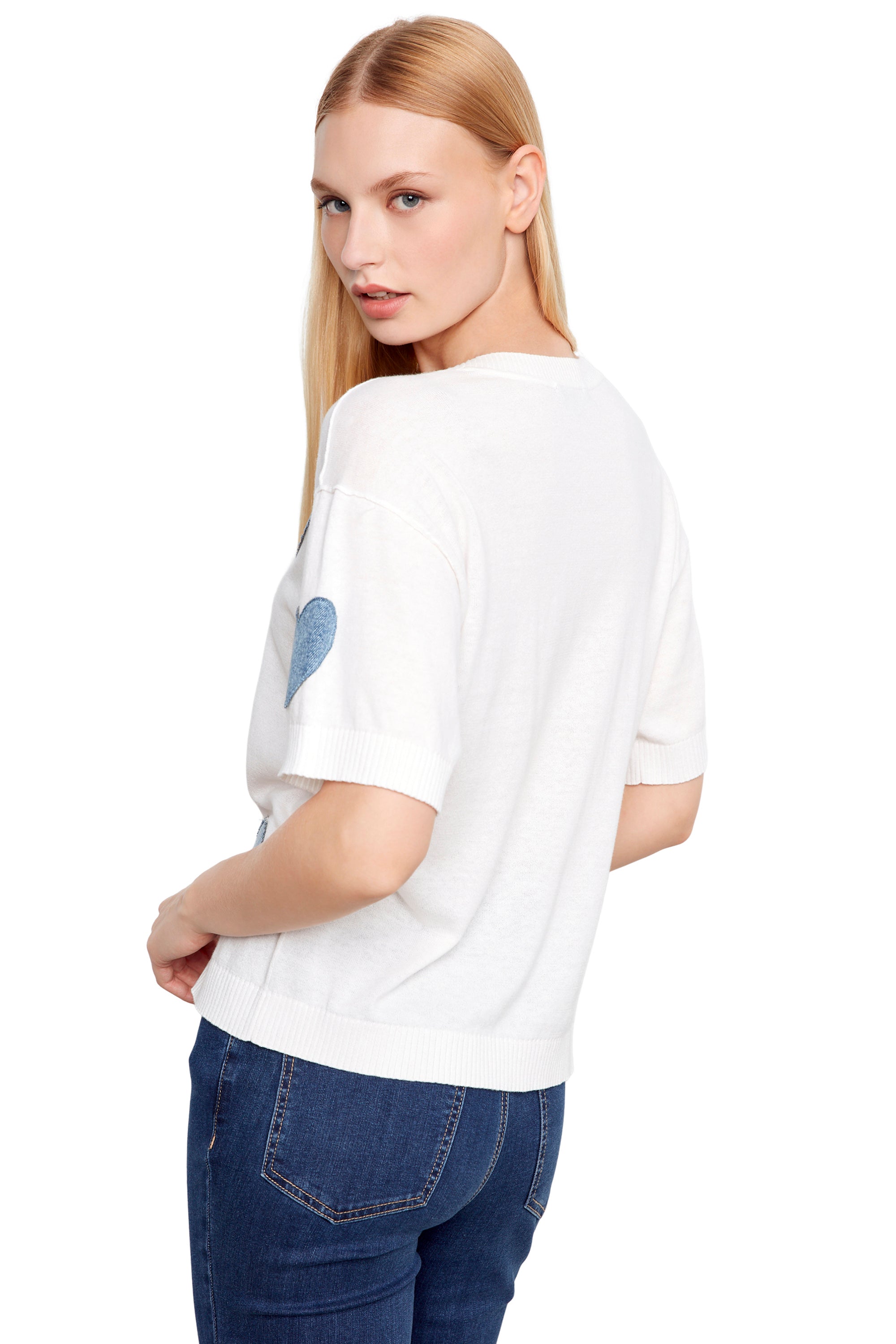 Playful denim appliqué hearts adorn this soft, lightweight pure cotton pullover sweater for a charming touch of whimsy. Easy and breathable, it’s the perfect feel-good layer to brighten everyday looks.