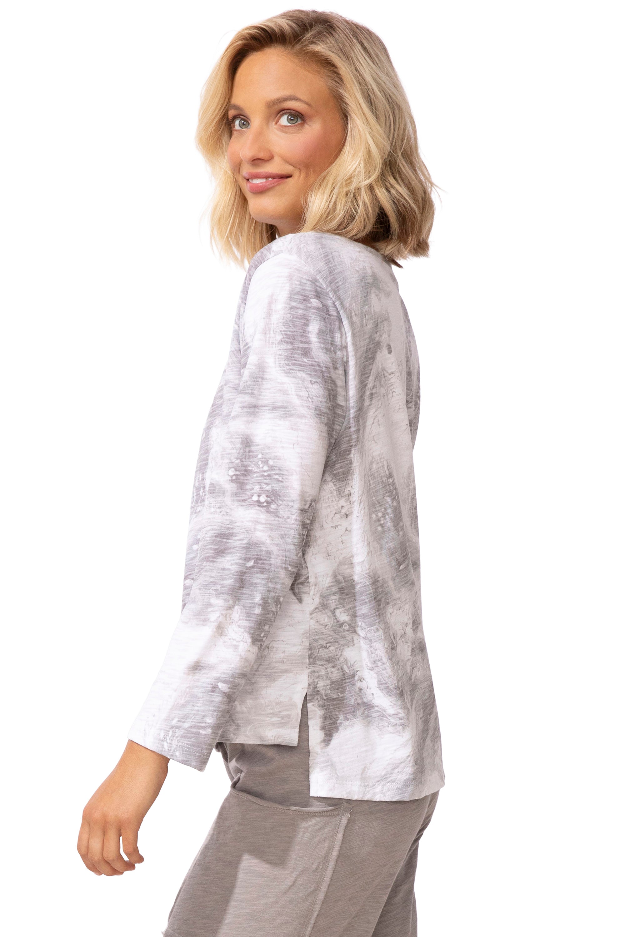 Ride the wave of style with this ocean-inspired marble print tee, crafted from the finest Peruvian cotton jersey prized for its softness, durability, and strength. Slub-textured yarns add a unique, nuanced finish, while the relaxed cut and hi-lo hem make it perfect for layering or wearing solo.