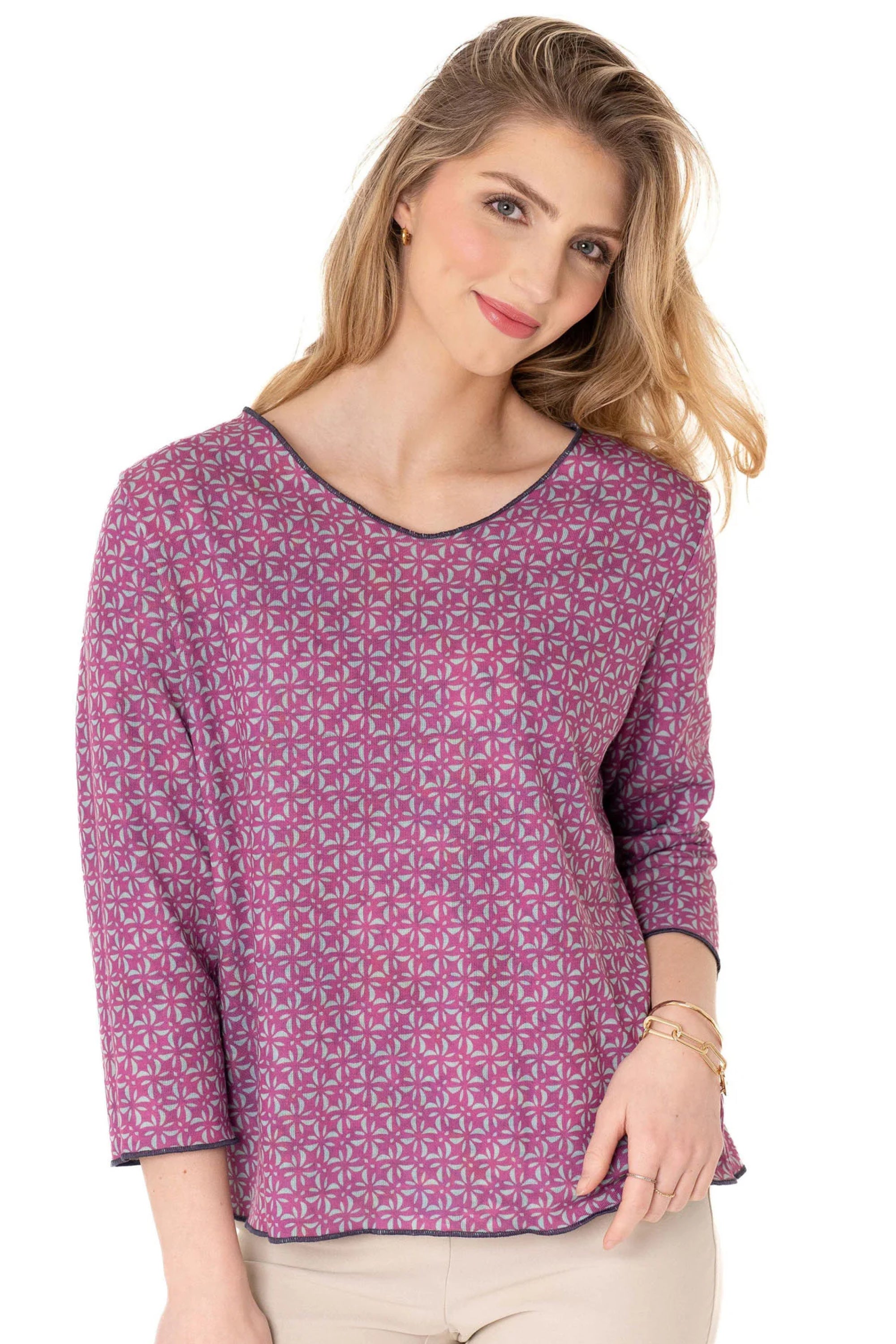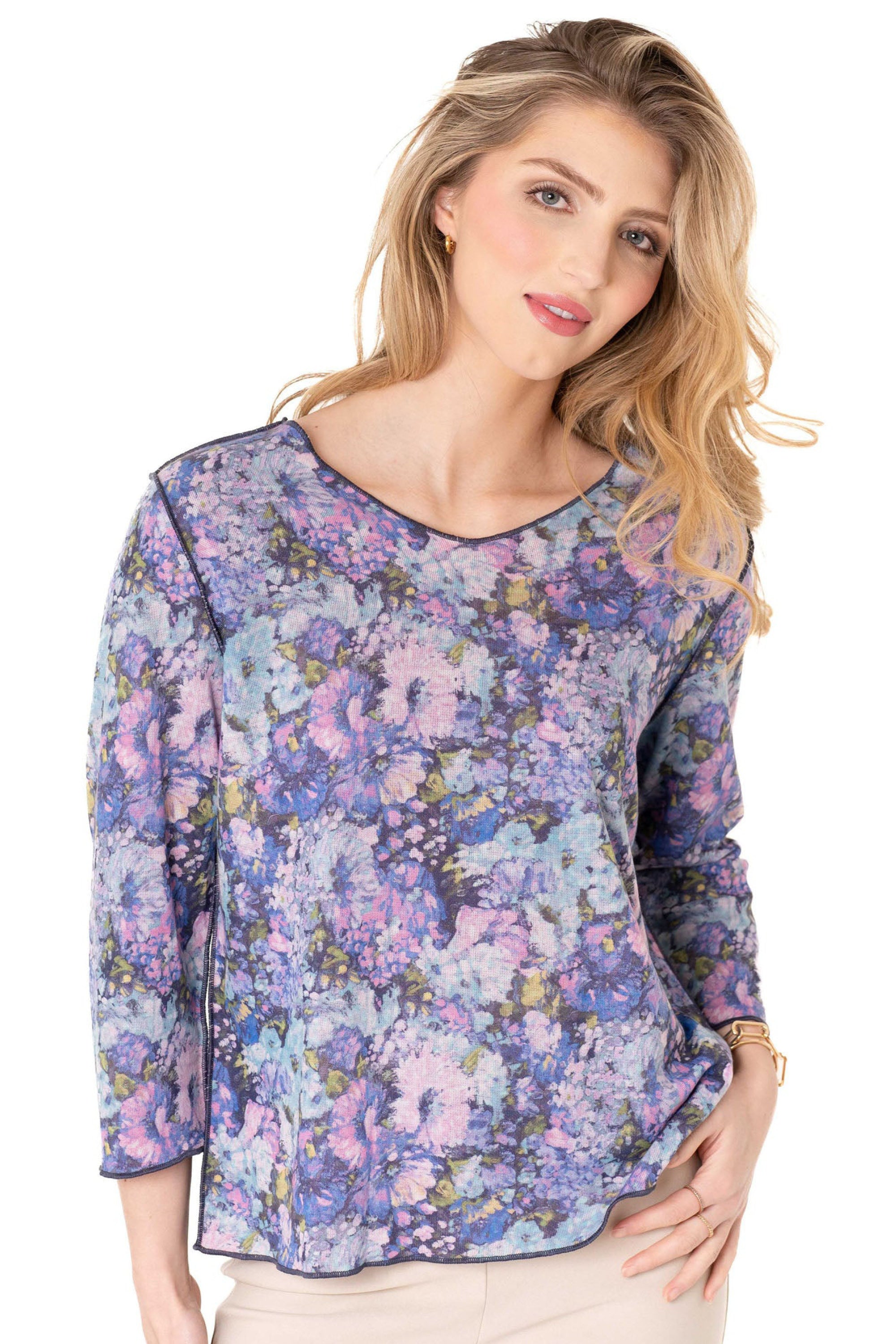 This reversible tee presents two stylish options in one, with a bouquet of summer florals on one side and a geometric floral pattern on the other. Its relaxed silhouette and soft fabric deliver comfortable wear with refined, artful sophistication, ideal for travel or elevating everyday outfits.