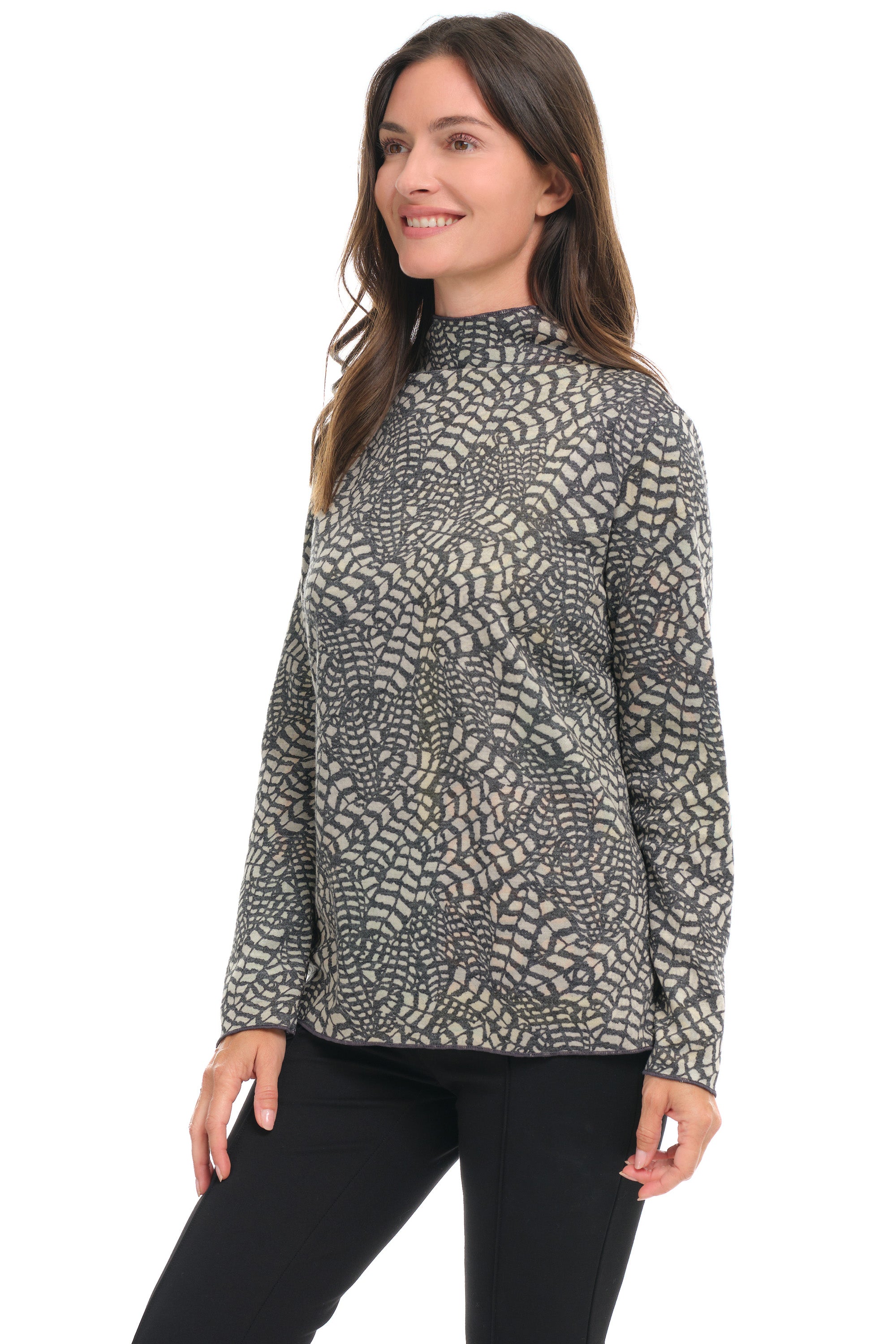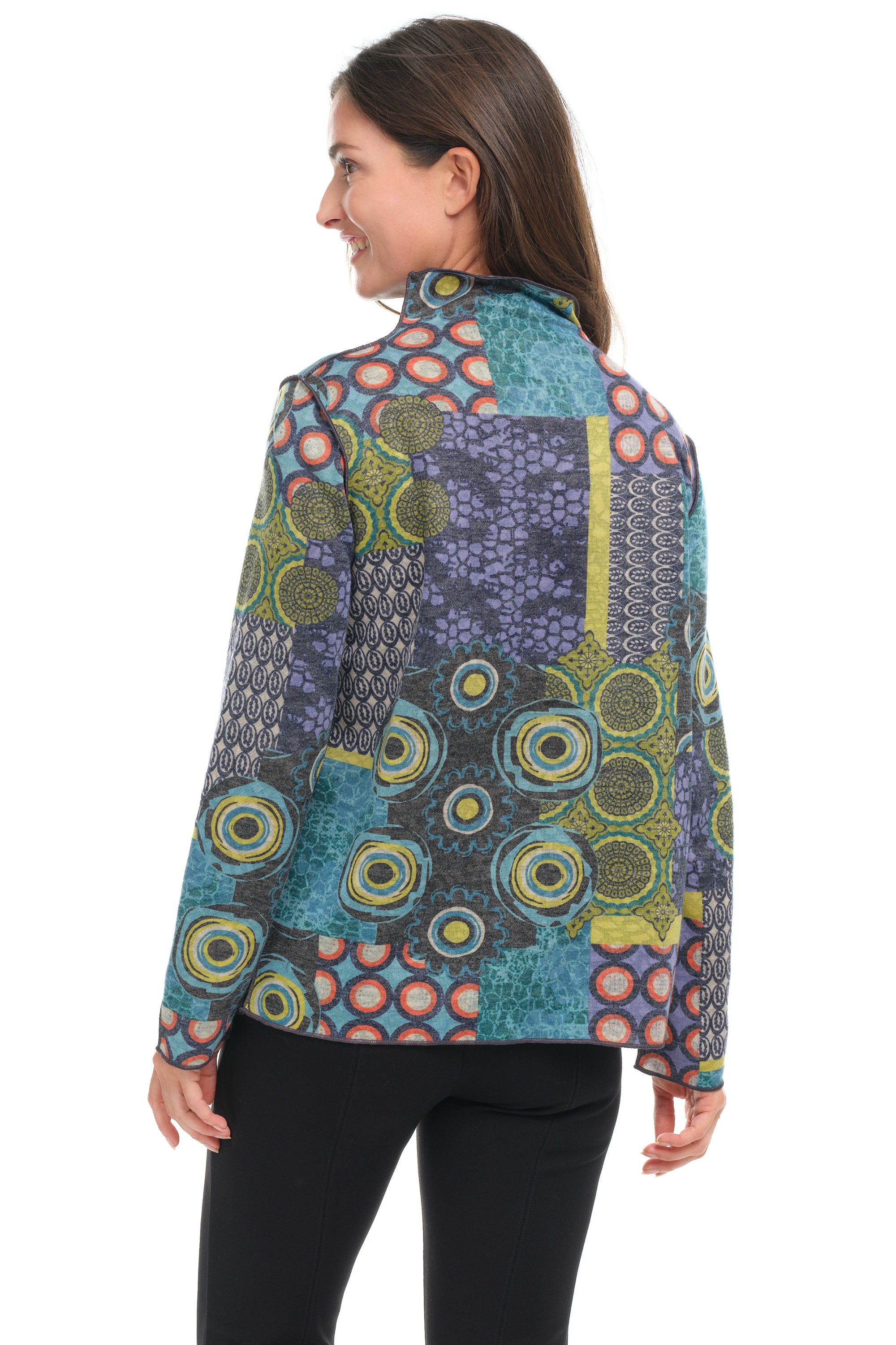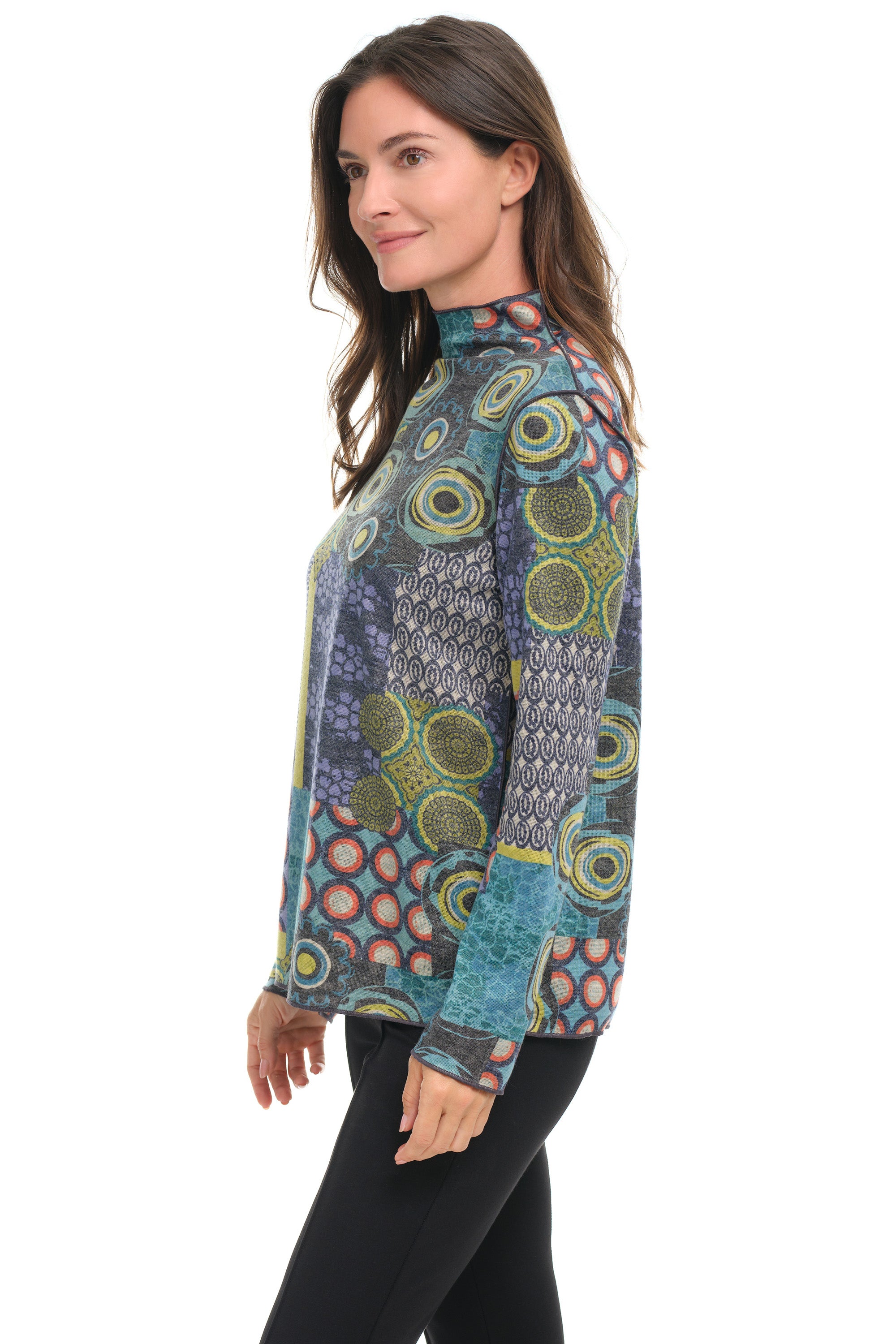 Double the style, double the fun. This reversible jersey top features an abstract geometric print on one side and a striking feather graphic on the other, letting you switch up your look in an instant. With a mock neck, exposed seaming, and long sleeves, it offers a relaxed yet distinctive silhouette. The straight hem falls at the hip, making it a versatile, playful piece that’s perfect for travel, layering, or adding an unexpected twist to your everyday wardrobe.