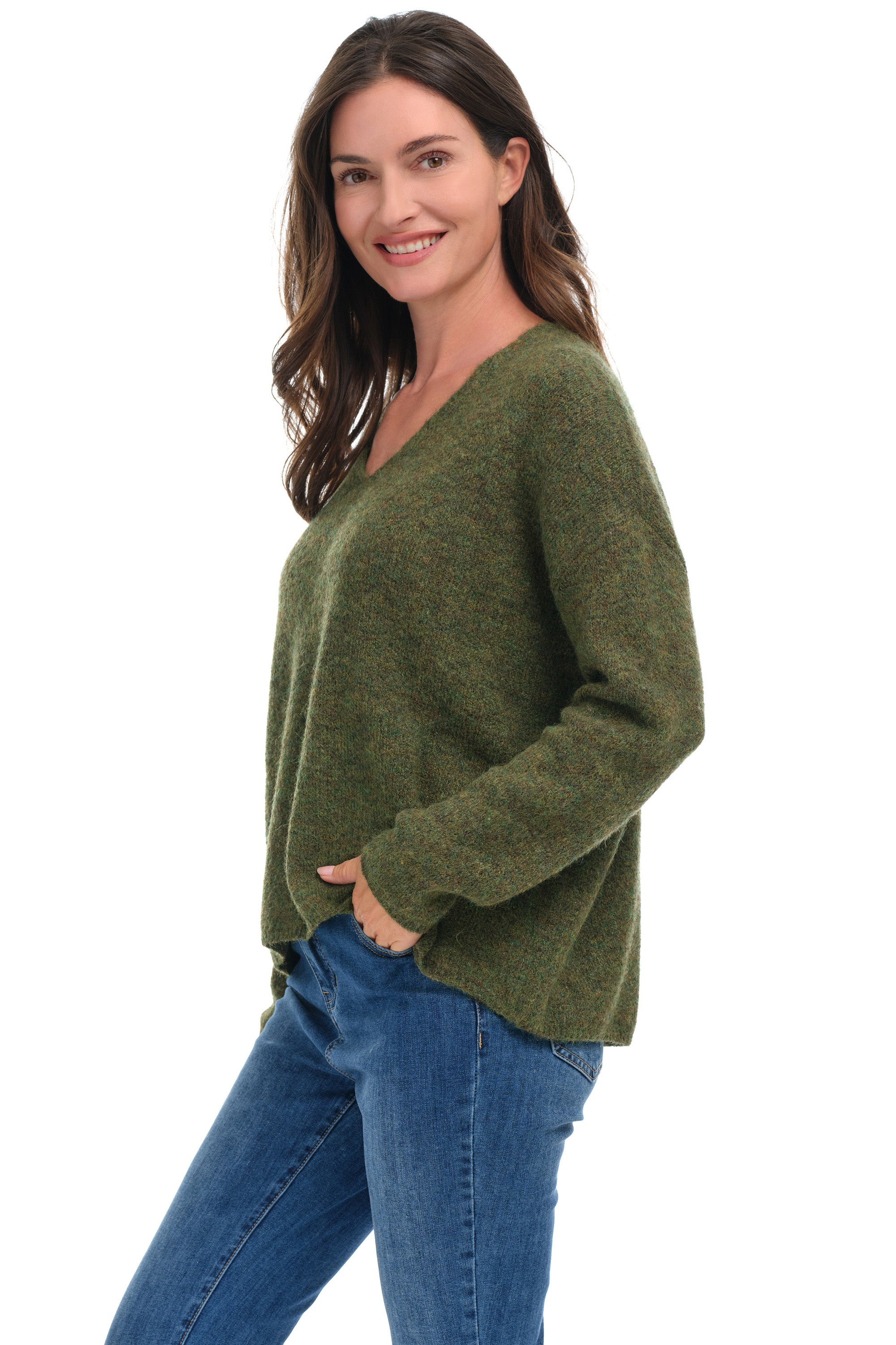 Soft, fuzzy, and irresistibly chic, this heathered green pullover is made to be touched… and worn everywhere. Crafted from a luxurious wool blend, it features a flattering V-neck, relaxed drop shoulders, and long sleeves that beg for a little extra snuggle. The generous fit and hi-lo boxy hem that falls at the hip create a relaxed, effortlessly stylish silhouette—perfect for pairing with jeans, trousers, or just curling up with a warm drink.
