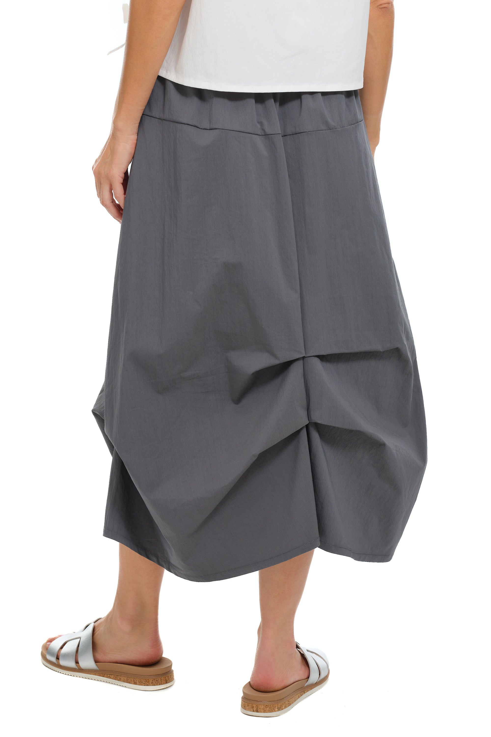 Crafted from crisp stretch-cotton blend poplin with a refined, luxurious hand, this artsy skirt makes a striking statement. Sculptural side and back tuck pleats, an asymmetrical hem, a sleek pull-on waist, and two pleated patch pockets create a look that’s both modern and elevated.